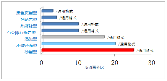 國際原子能機構(2013 年)將 世界鈾礦床劃分為7 大工業類型, 各類型占世界資源量的估算百分比分別為: